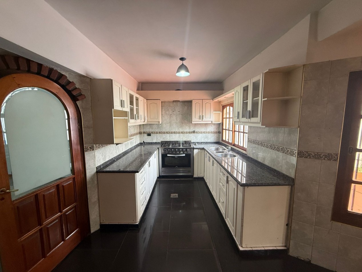 En la planta baja cuenta con un amplio living comedor, cocina completa con un toilette de recepción, amplia cochera cubierta, dependencia y patio con parrilla