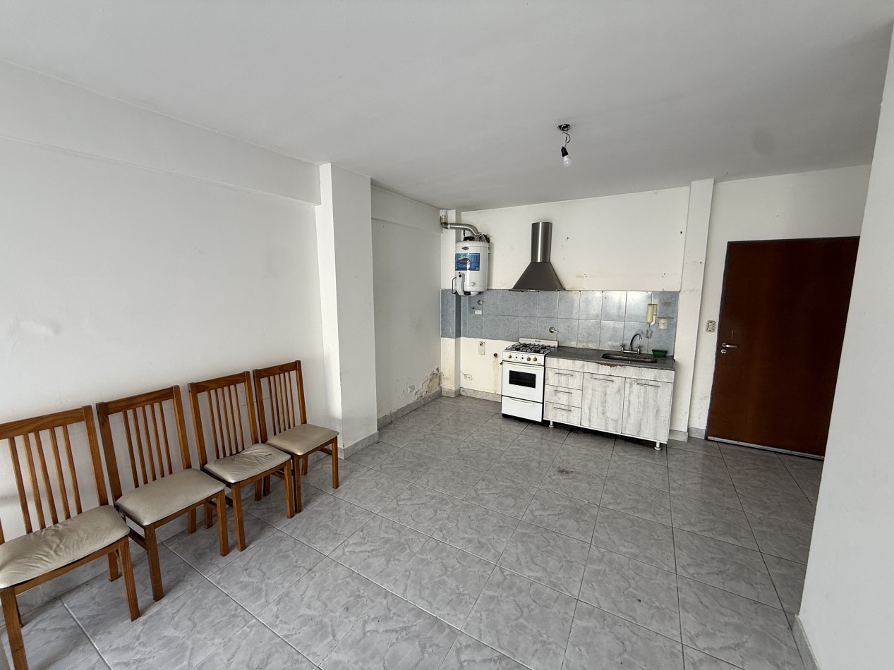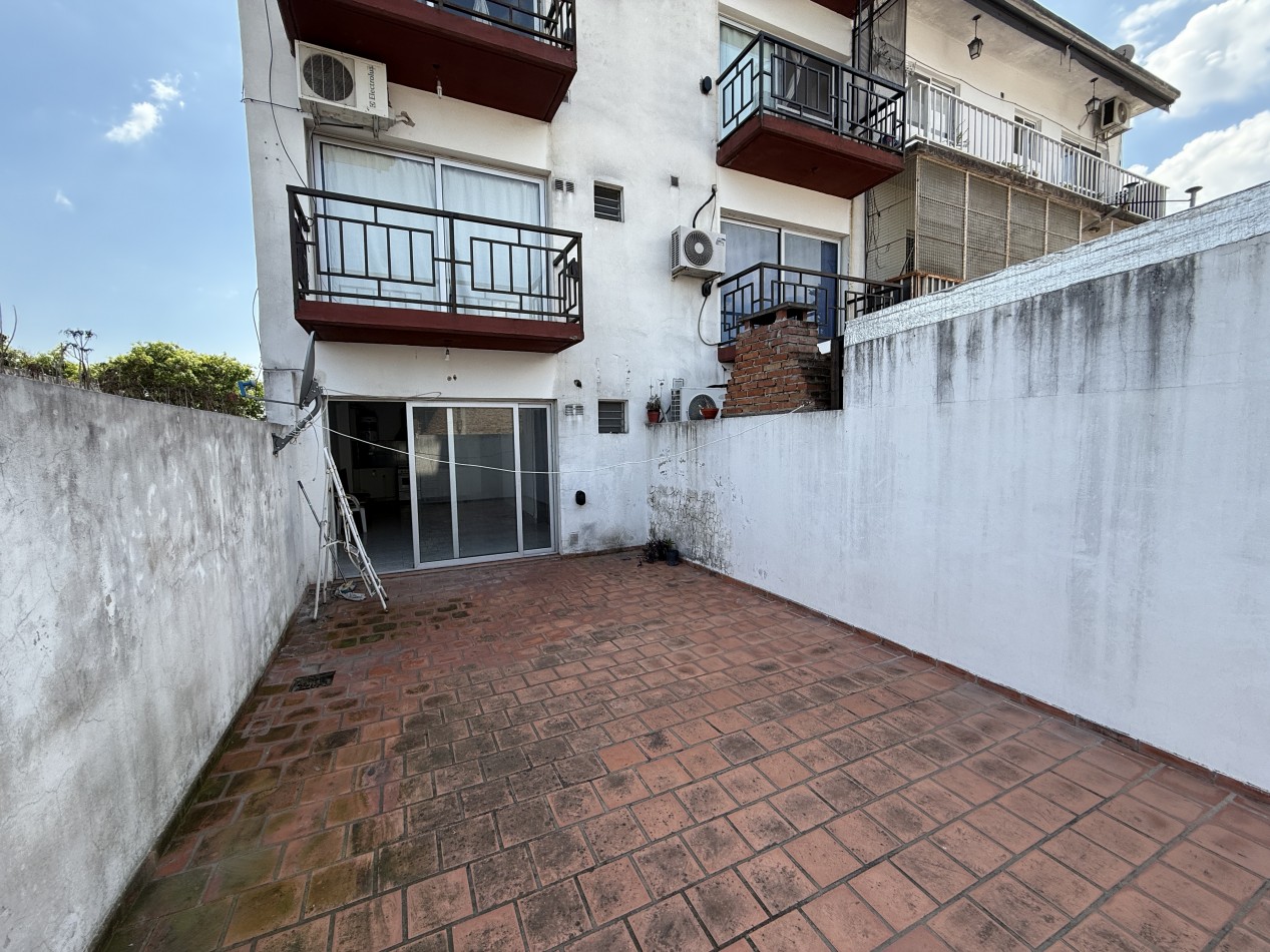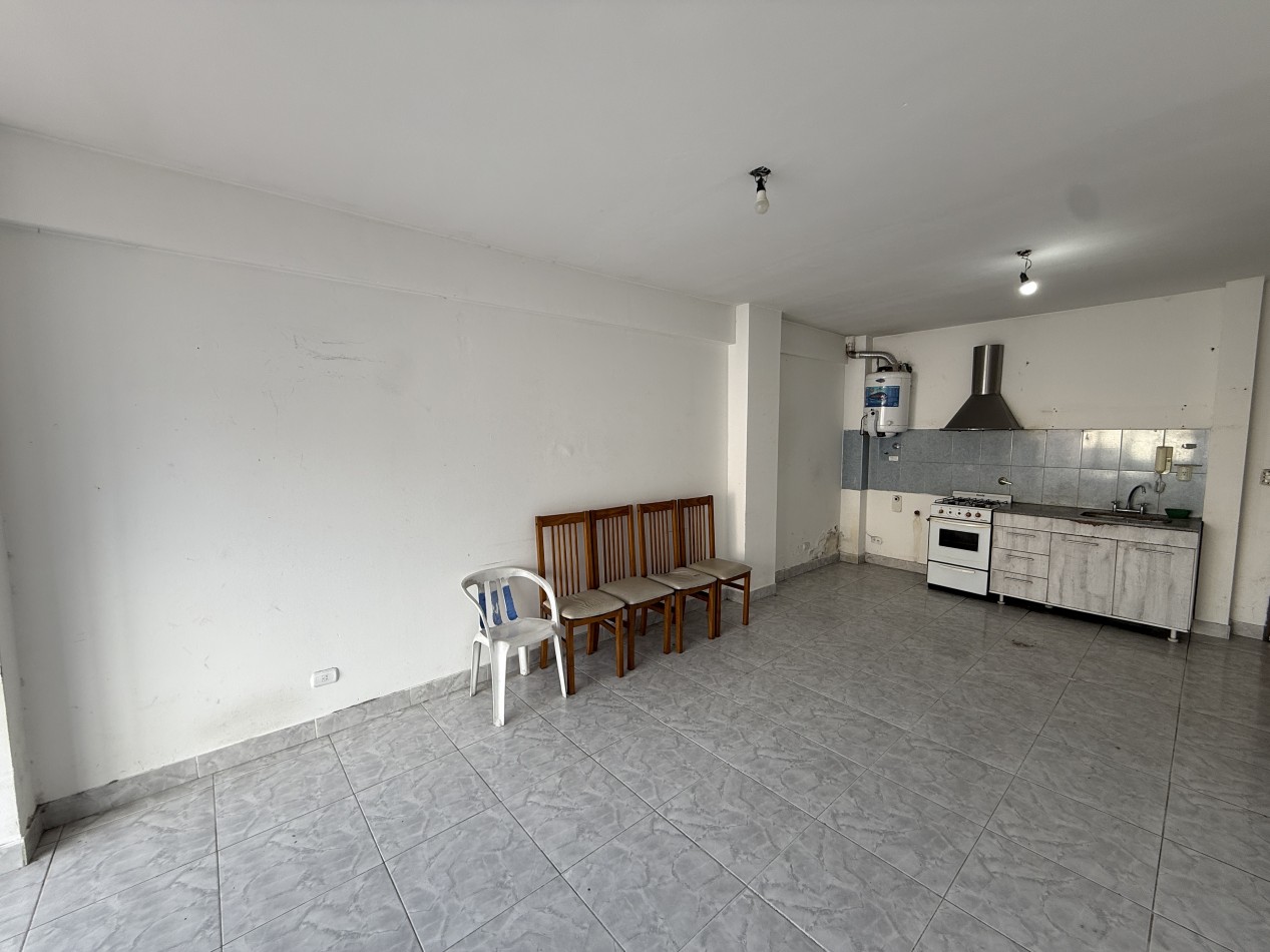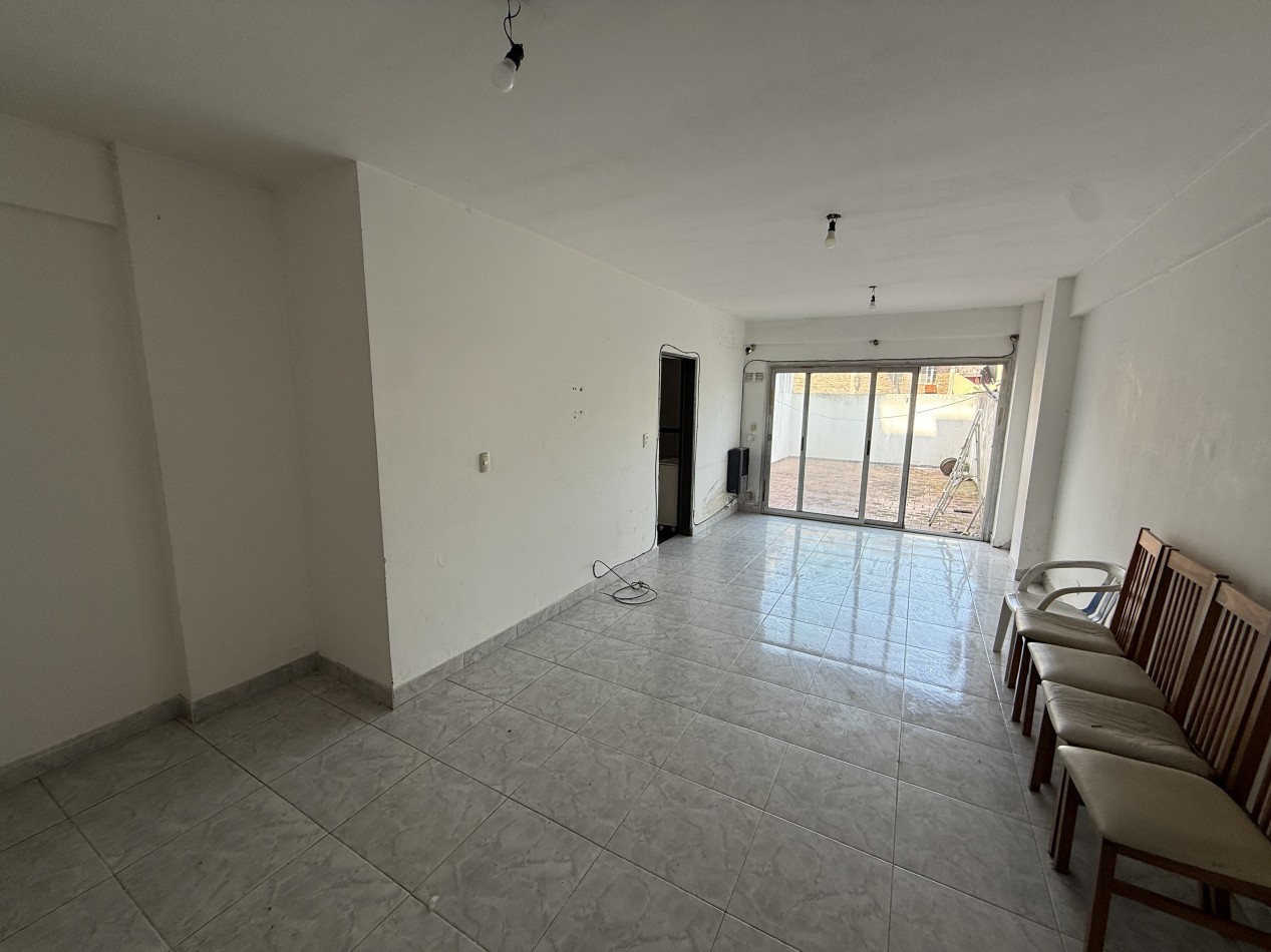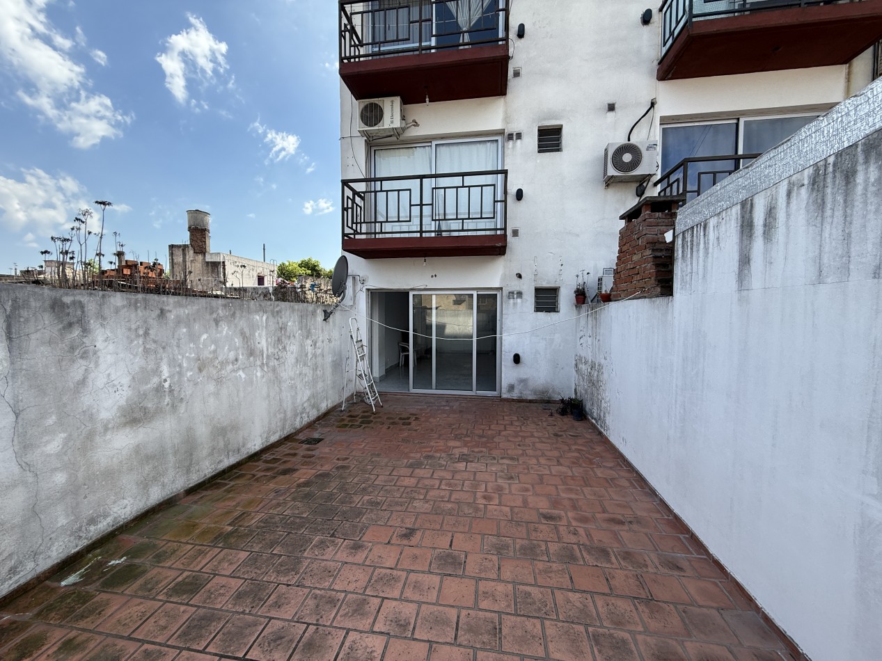 Amplio departamento mono ambiente en alquiler. El mismo esta compuesto por cocina y baño completo, con artefactos a gas natural, amlpio patio descubierto. Ubicado en un primer piso de acceso por ascensor. Buen estado en general, y excelente ubicación a metros del centro comercial de Chilavert.