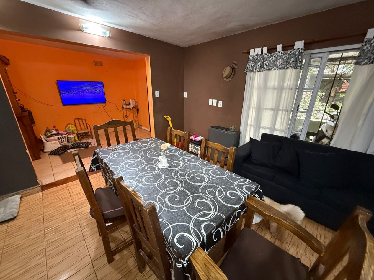 Venta amplia casa de dos plantas. Entrada por patio cerrado al distrubuidor y luego al living. Se conecta con la cocina comedor con pequeño patio y lavadero. Cuenta con una dormitorio y baño. Subiendo las escaleras dos dormitorios con baño. Patio cubierto y con cocina completa el cual se puede usar como cocina. balcon a la calle. Cuenta en frente con un guarda coche techado. Cuenta con escritura. Se puede hablar por permuta por departamento en Lugano.