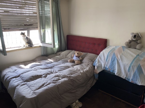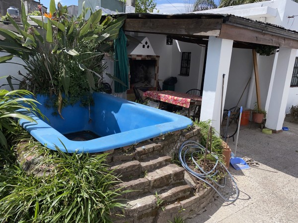Casa con jardín delantero y entrada de auto al amplio garage. Ingresando al living encontramos las dos habitaciones y un baño. Cocina con puerta al patio trasero el cual tiene una habitación usada como deposito.