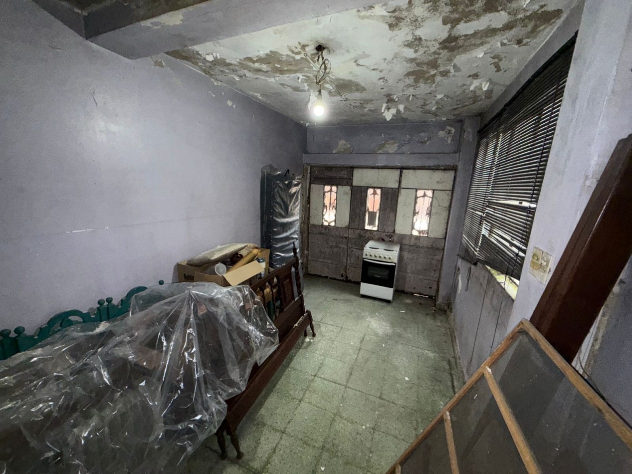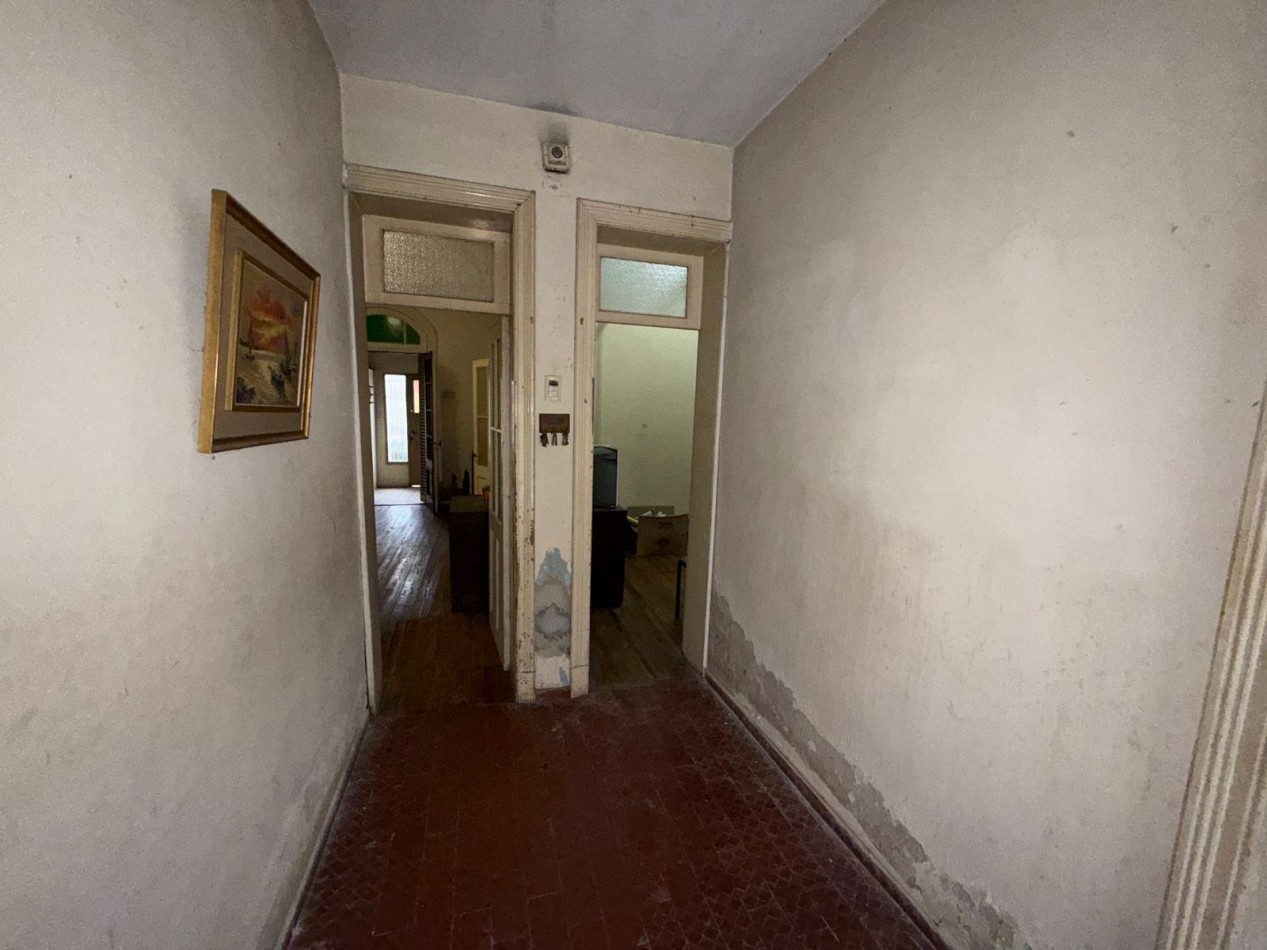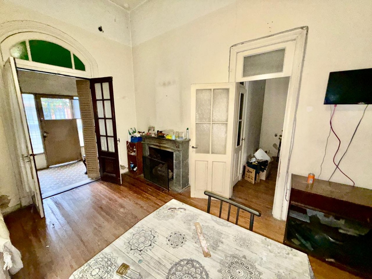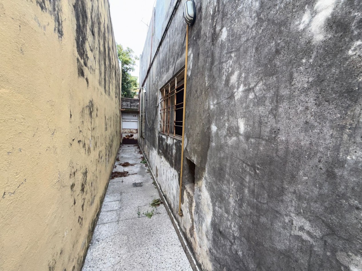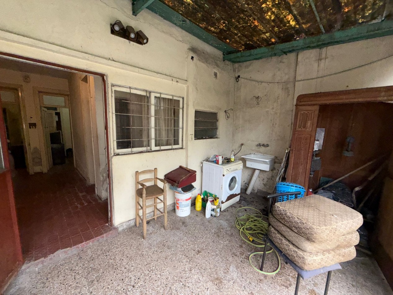 Amplia casa de epoca en pasaje. Ingresa por un distribuidor al living, a la derecha el garage, a la izquierda la habitacion con ventana a la calle. Siguiendo al fondo el baño y las dos habitaciones. Seguimos por el pasillo a la cocina. Se encuentra un baño pequeño. Salida al lavadero cerrado con acceso al patio el cual cuenta con un deposito. Se puede ingresar a la propiedad por pasillo.