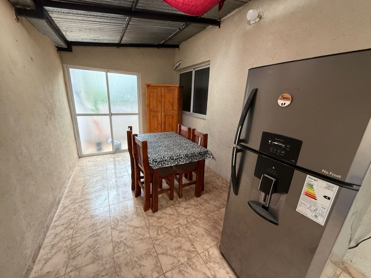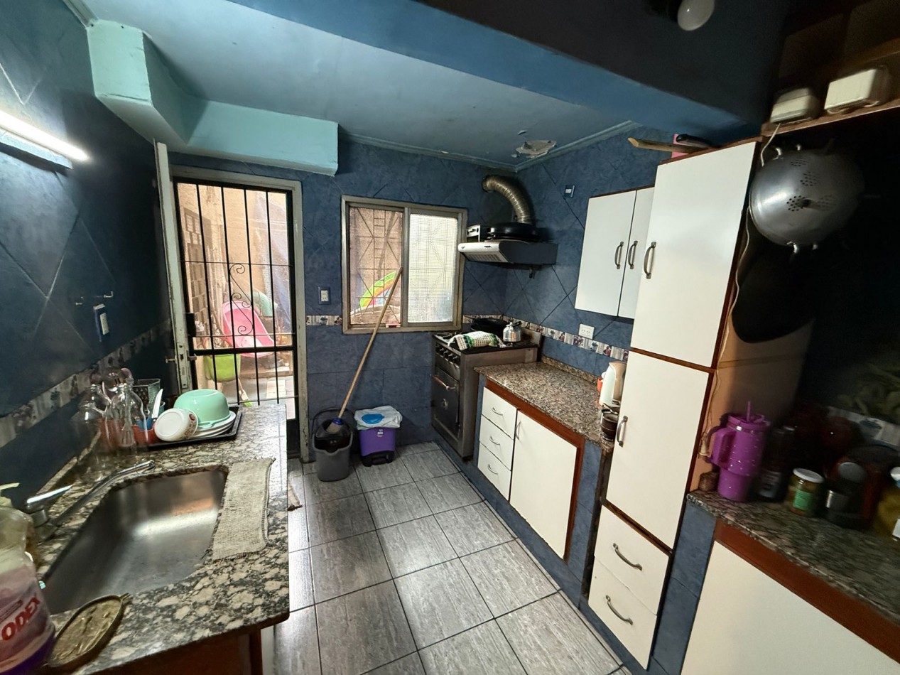 Venta amplia casa de dos plantas. Entrada por patio cerrado al distrubuidor y luego al living. Se conecta con la cocina comedor con pequeño patio y lavadero. Cuenta con una dormitorio y baño. Subiendo las escaleras dos dormitorios con baño. Patio cubierto y con cocina completa el cual se puede usar como cocina. balcon a la calle. Cuenta en frente con un guarda coche techado. Cuenta con escritura. Se puede hablar por permuta por departamento en Lugano.