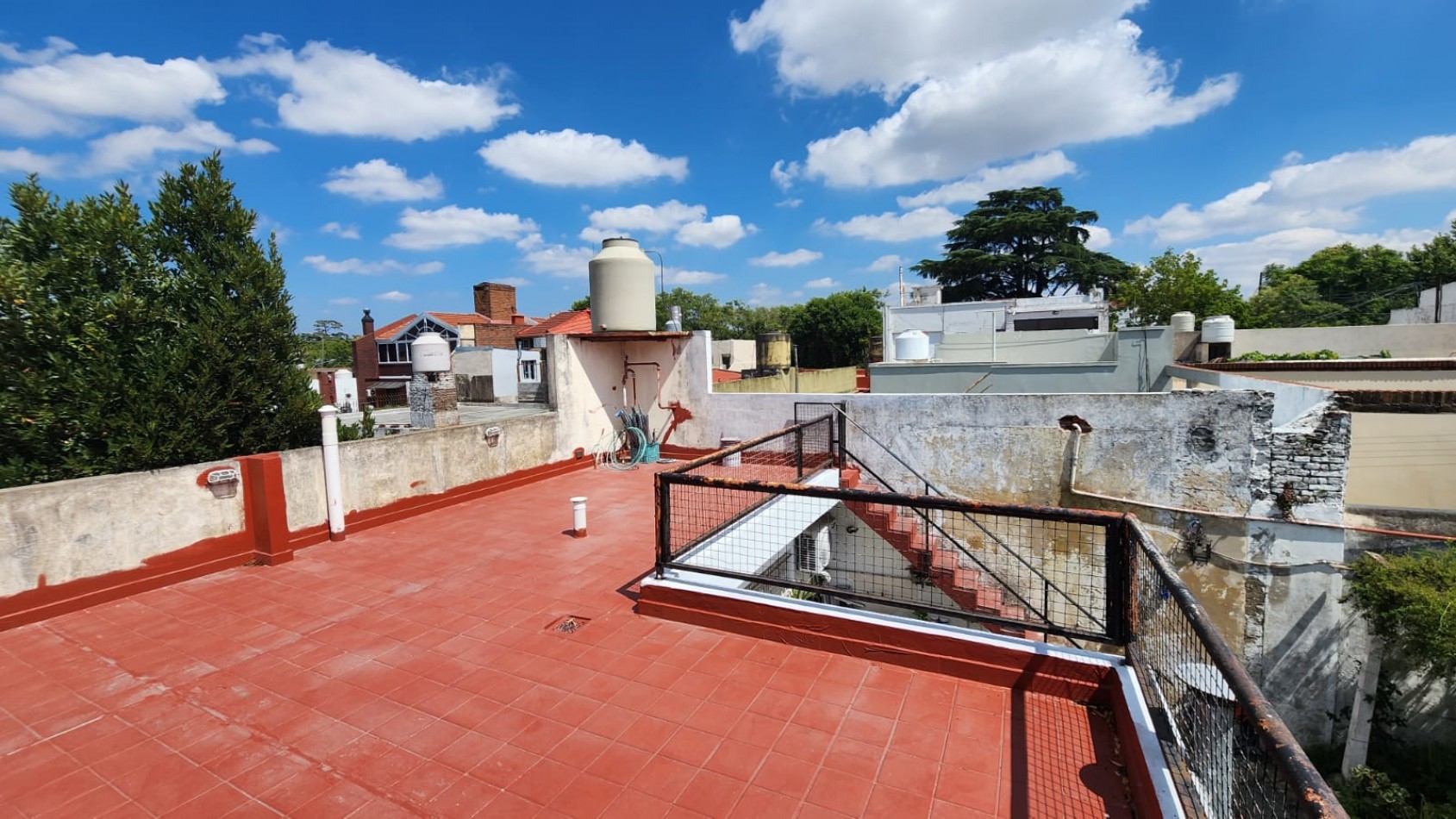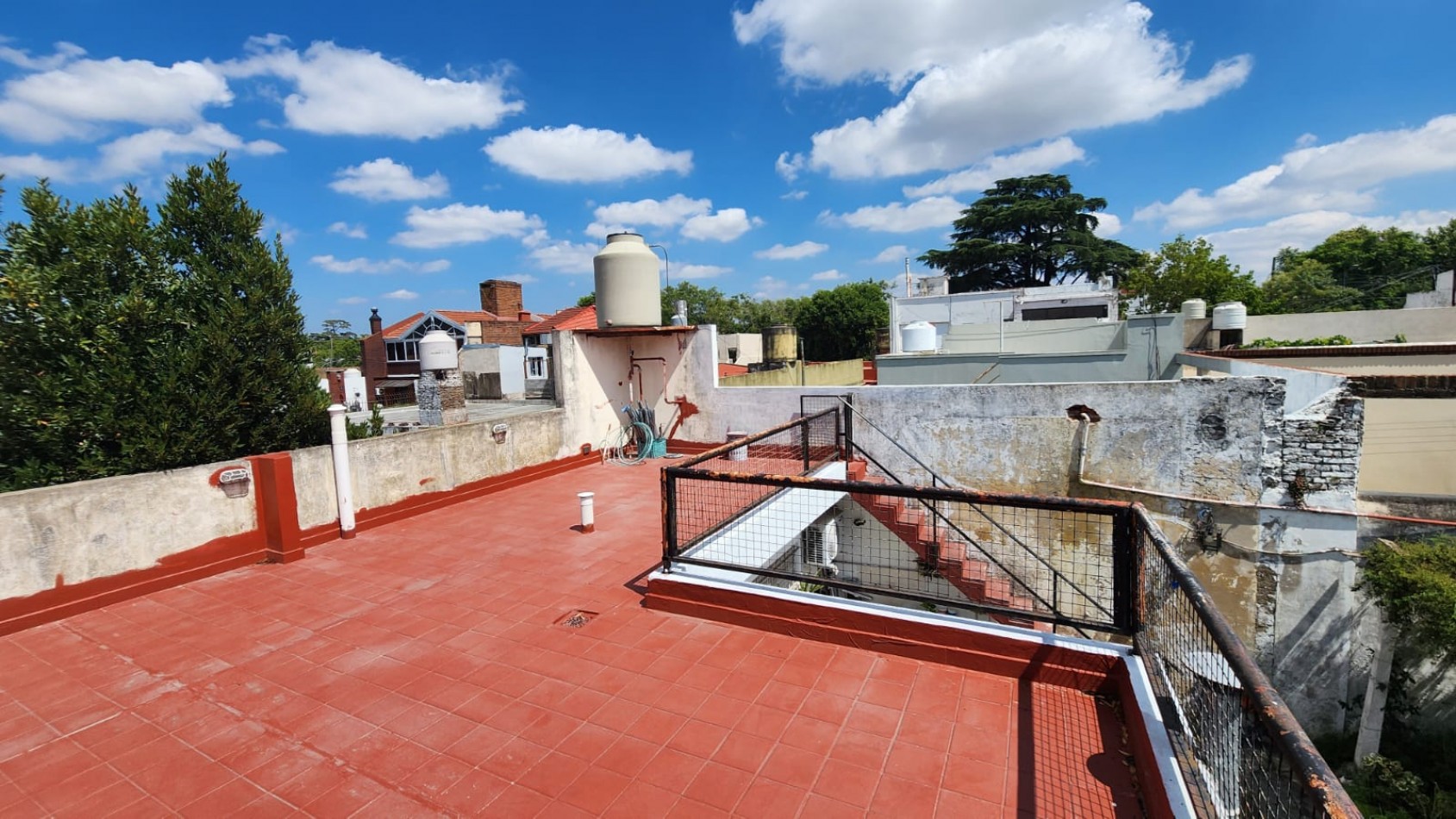 Al departamento del fondo se ingresa por la cocina comedor, tiene el dormitorio con placard, baño completo y terraza con posible ampliación.