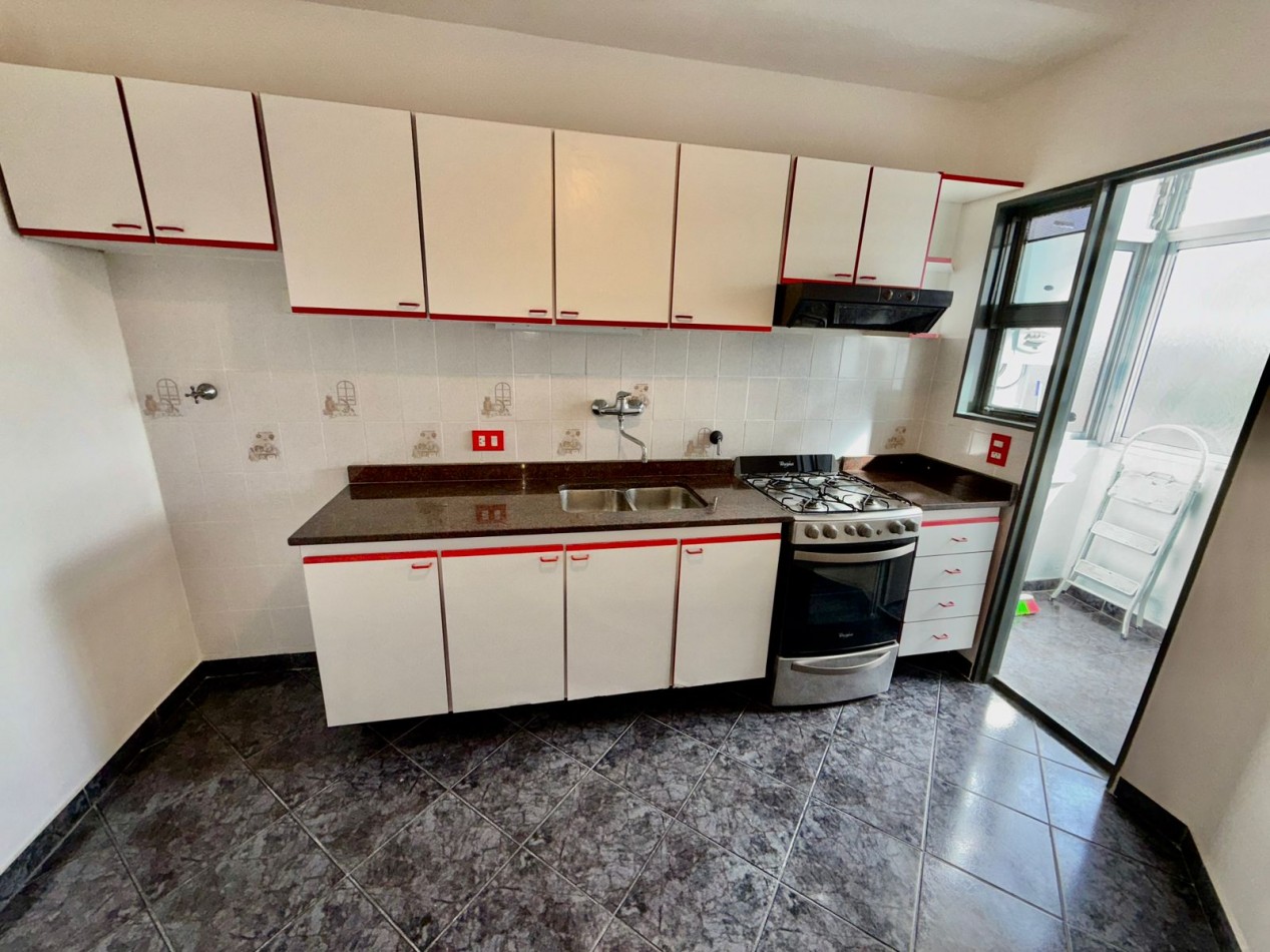 Departamento en 7 piso con orientacion oeste. Ingresando a la cocina completa con espacio para mesa, acceso al lavadero. Amplio living con pasillo al baño y las dos habitaciones. Excelente estado. La torre cuenta con estacionamiento.