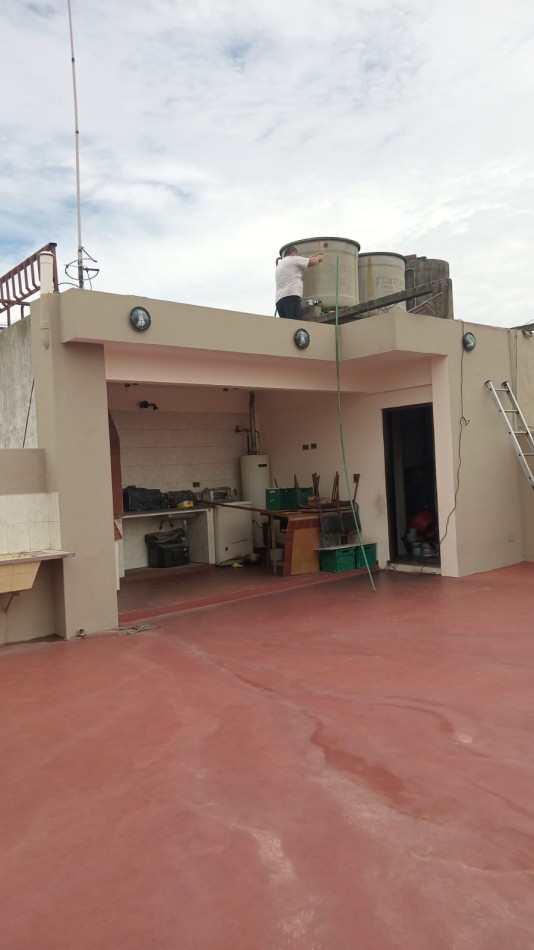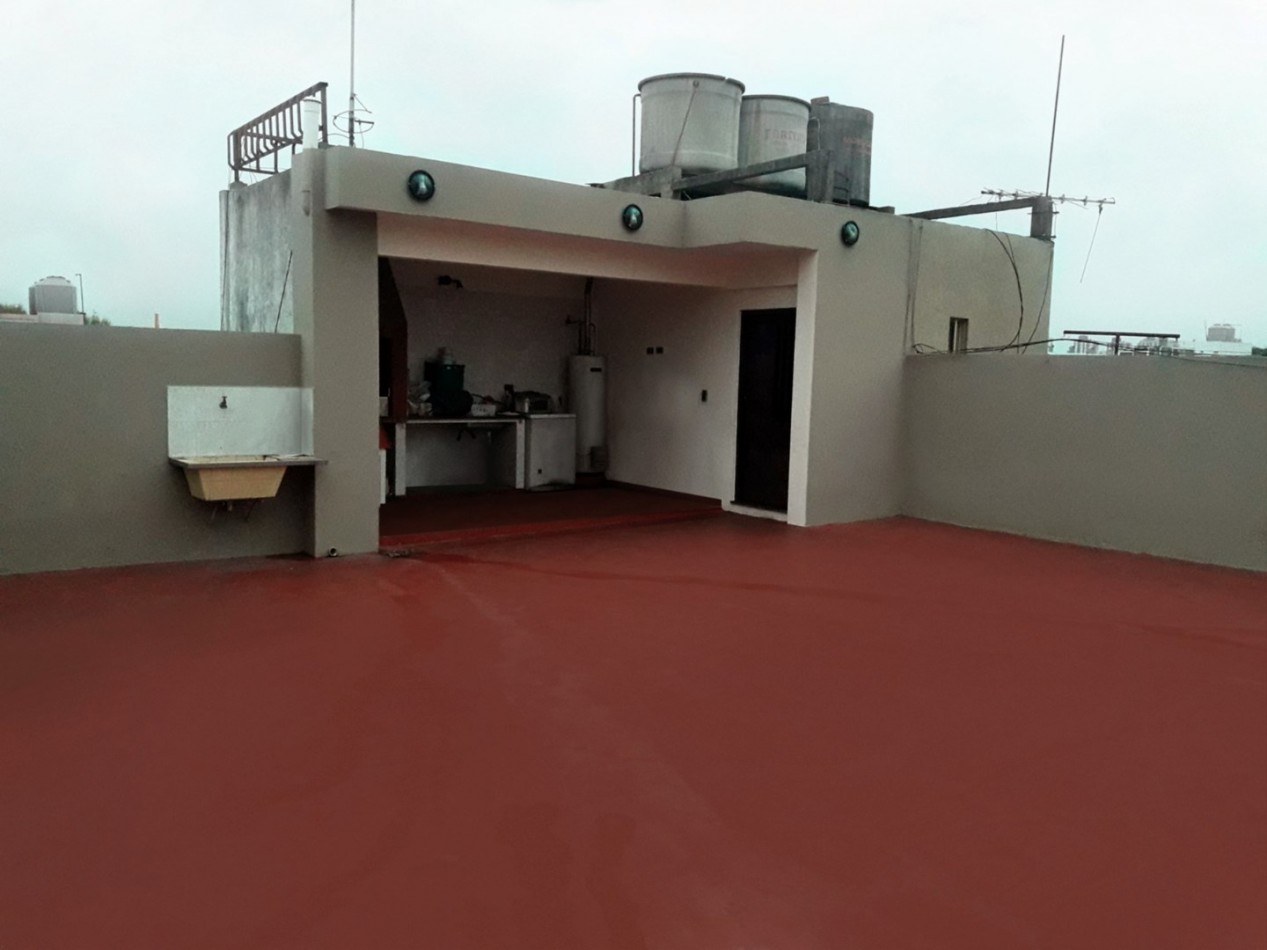 Departamento tipo PH en segundo piso por escalera. El mismo se compone por: 2 dormitorios con placares, living comedor, cocina comedor, baño completo, balcón corrido a la calle, y en el tercer piso cuenta con terraza con quincho, por acceso independiente.
